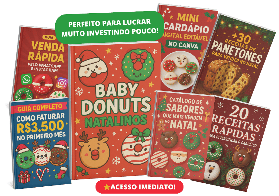 Totalmente ilustrado e organizado para você aprender e começar a lucrar com Baby Donuts Natalinos ainda nesta semana!